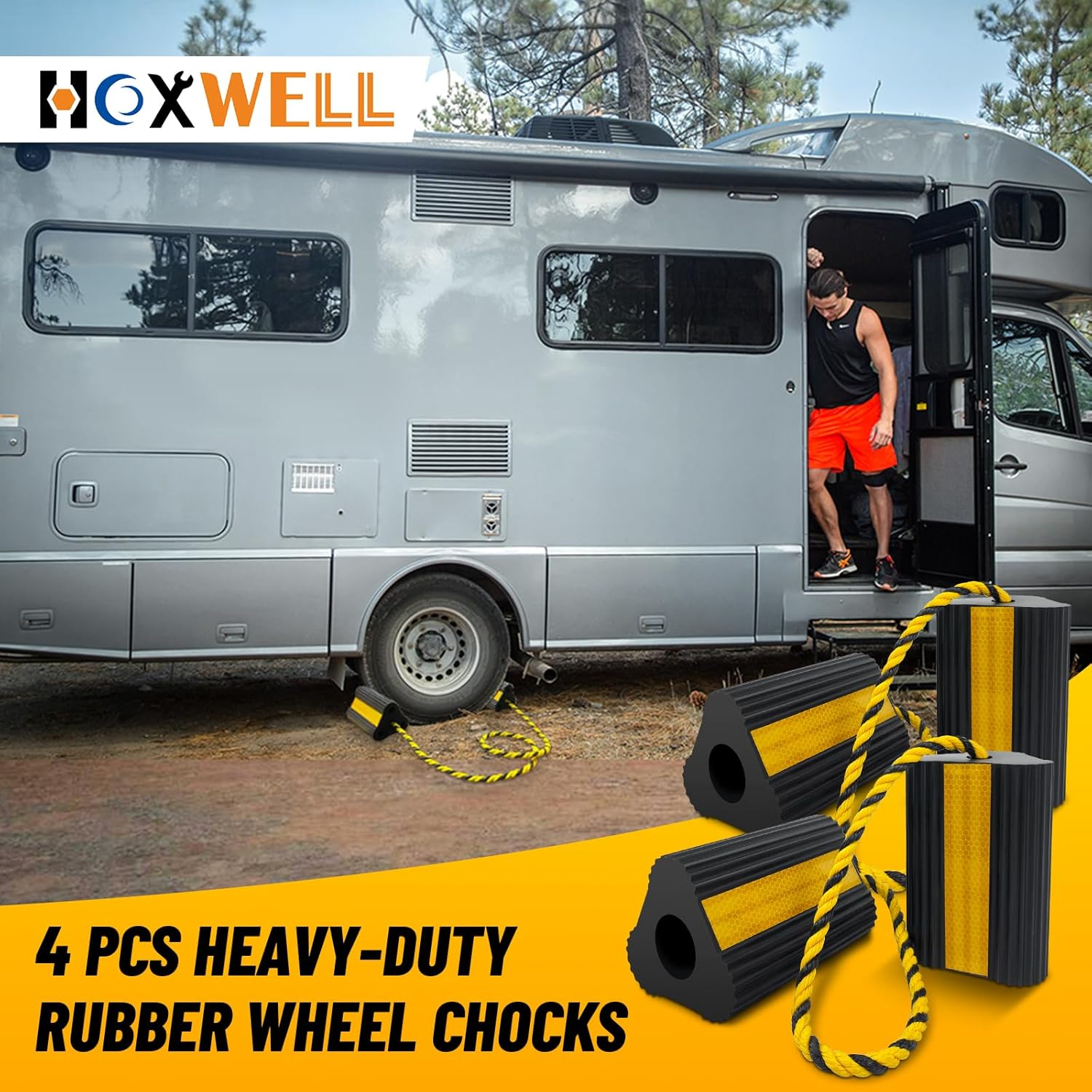 - Easy to Use: With a user-friendly design, our wheel chocks are lightweight and portable, making them convenient to transport and store. Simply place them in front of or behind the tire and enjoy hassle-free installation