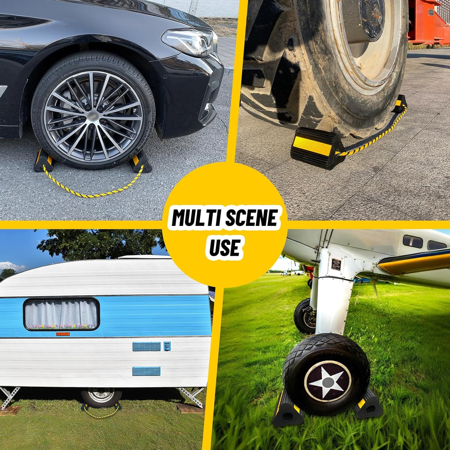 - Versatile Application: Designed for various vehicles, our wheel chocks are suitable for different scenarios, including loading docks, garages, campgrounds, and more. They are essential equipment for parking and securing your valuable assets